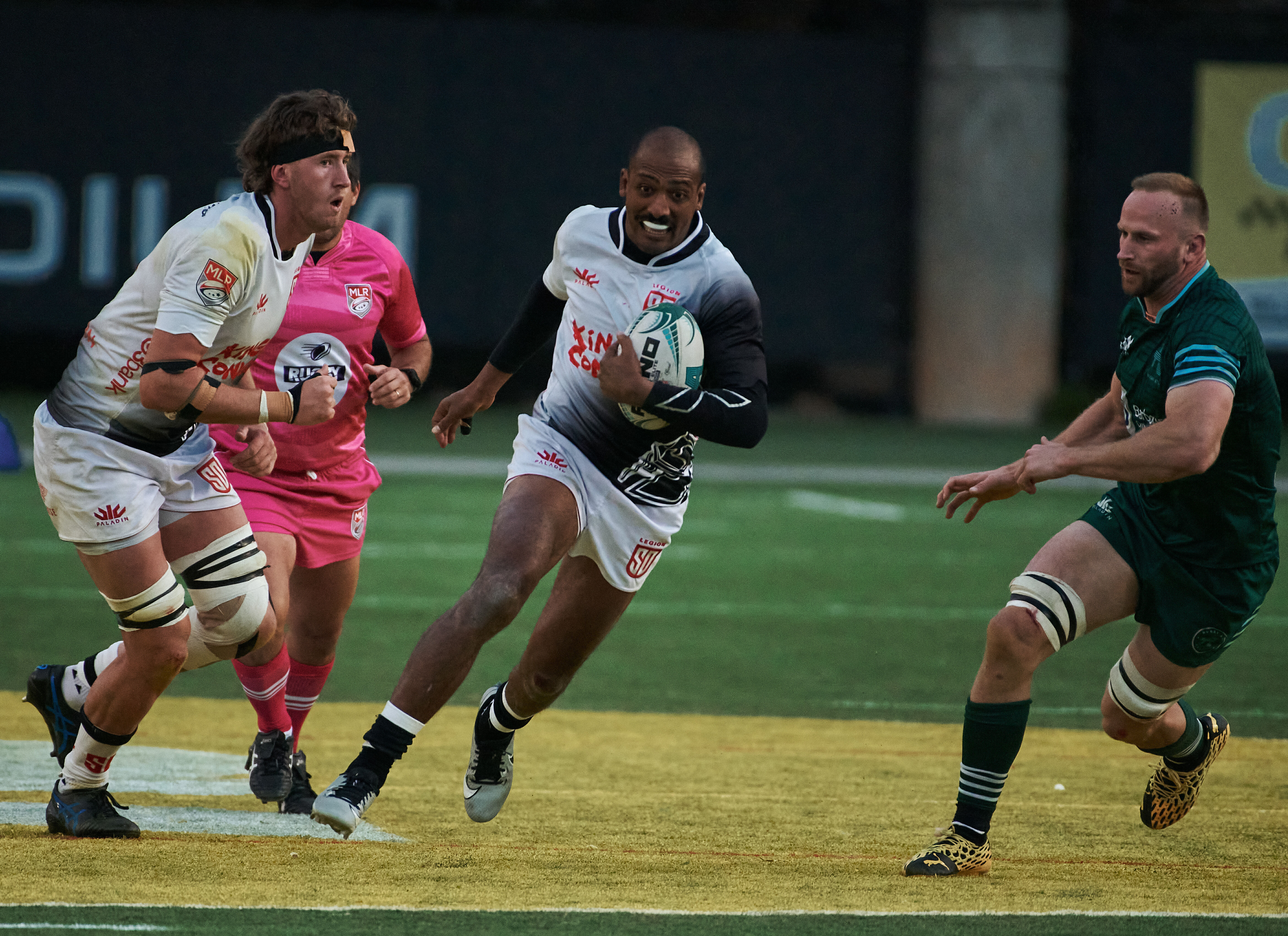 Winger Tomas Aoake got things going early with an acrobatic try in the corner to put the Legion ahead, 5-0, just seven minutes in. This is Aoake's second straight week with a try scored. A Will Hooley conversion brought the lead to 7-0.