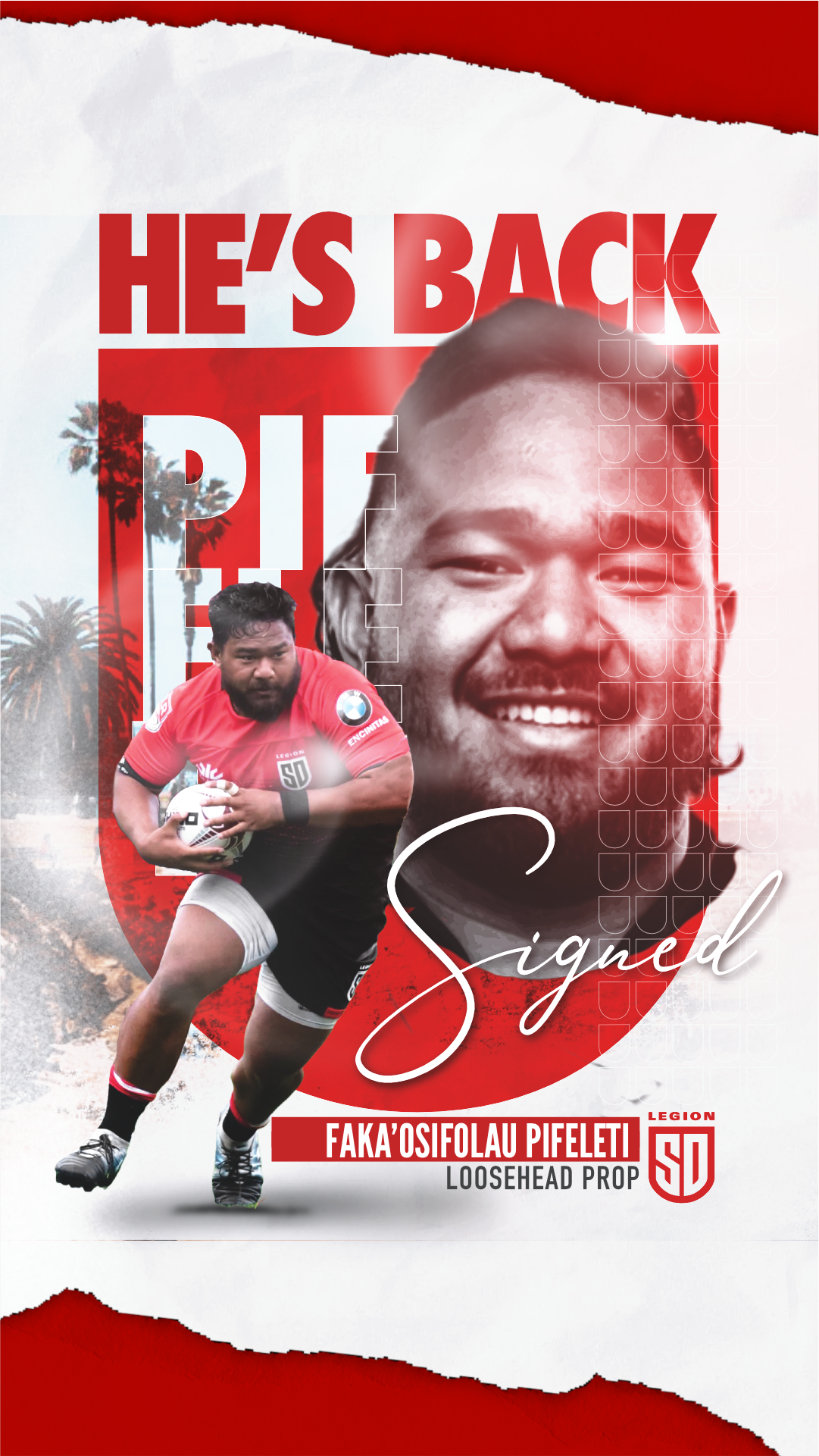“We welcome Oti back to the SD Legion family. He’s a big man that will dominate the set-piece but also lead from the front which is what we are after. His ability to carry hard with ball in hand is an added bonus which will really add some sting to our attack” from Head Coach Danny Lee